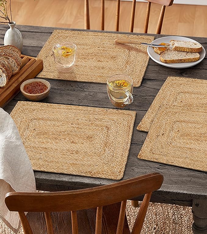 - IDEAL FOR GIFTING AND SERVING:This set of 4 jute blend placemats make for ideal gifts and are perfect for adding a special touch to your holiday celebrations. They are so charming that you may be tempted to keep them for yourself and use them for family gatherings.