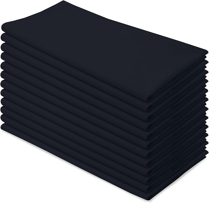 Aunti Em's Kitchen Flour Sack Dish Towels - Natural Cotton for Embroidery and Drying Glass, Hand, Dinnerware - Plain, Thick, Zero-Lint, Highly Absorbent - Set of 12, 27 x 27 Inch, Tuxedo Black