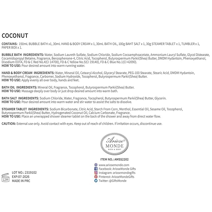 - NATURAL INGREDIENTS: Our deluxe gift box for women are formulated with a variety of natural ingredients, such as shea butter & Vitamin E that soothe and hydrate the skin. All the Ariosemonde Spa kits are cruelty and praben free, We do not test our products on animals