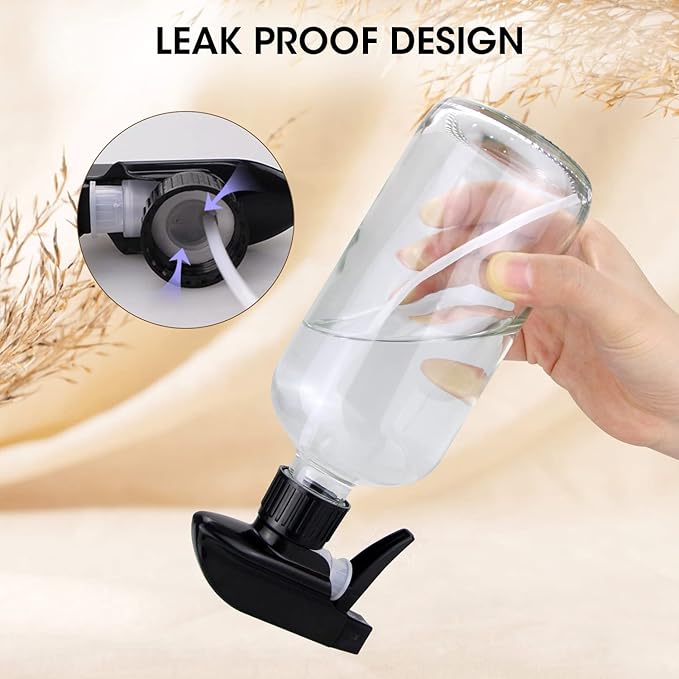 - Multifunctional: The glass bottles can fill with whatever liquid you want. Perfect for homemade cleaning solutions, hair moisturizing spray, kitchen cleaner, essential oils and so on.