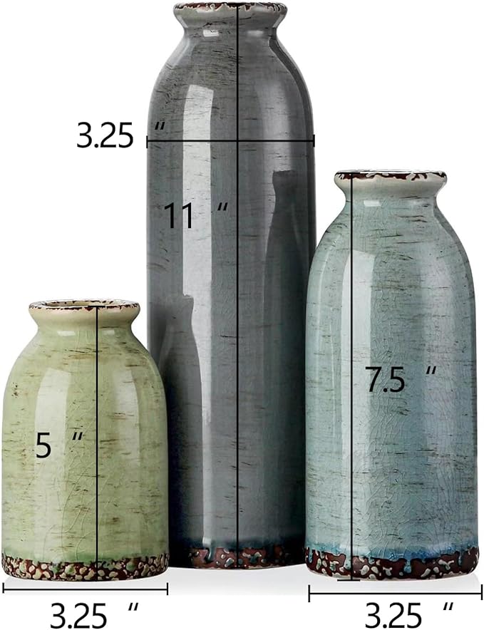 - Multifunctional decorative ceramic set-(size 3"L x 3"W x 10"H; 3"L x 3"W x 7.5"H; 3"L x 3"W x 5"H; This vase have Five other colors, and there's always one that will suit your decorating needs.