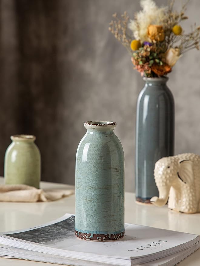 - Colorful Design: This multi color ceramic vase set made of blue, green and gray colors will bring a touch of brightness to your home decoration, whether it is placed in the living room coffee table, bookshelf, fireplace, porch,mantel or as a bathroom, bedroom, kitchen decoration is an excellent choice.
