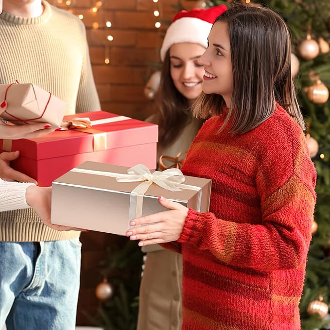 - 🎁【Package Contains】1 Pack large gift box,1*Gift Card, 72 inch *Champagne ribbon, 30g Paper Filler.Your any dissatisfied problems can be solved within 24 hours. Contact us when you need.