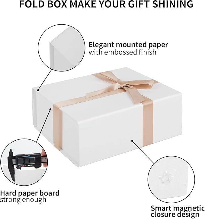 - 🎁 【Magnetic Closure Design 】This white gift box is design with concealed magnetic closure on two sides, which make the box open and close repeatedly easily.