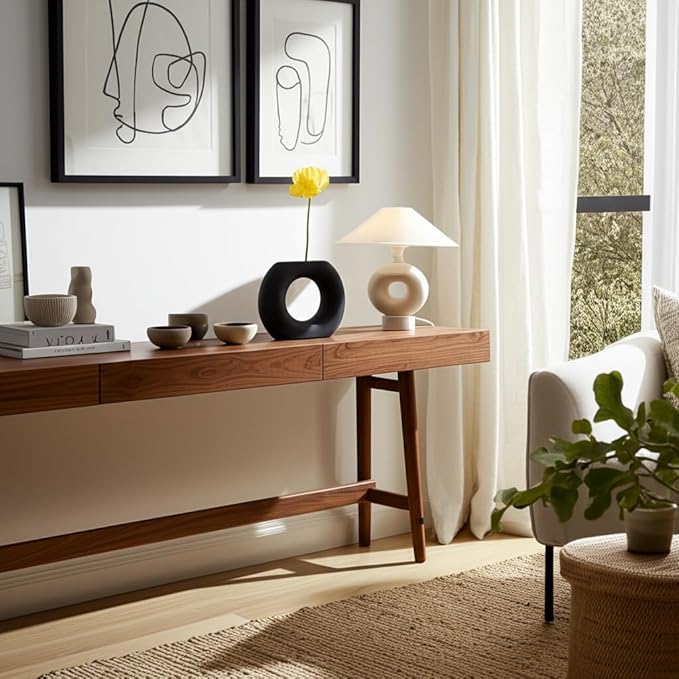 - MODERN MINIMALIST DESIGN - Elevate your home decor with this sleek black ceramic vase. Its contemporary ring shape adds a unique artistic touch, making it a stunning centerpiece for any space, from living rooms to offices.