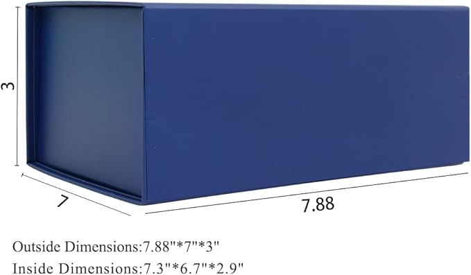 - The gift boxes are shipped flat assembled boxes outside measure: 7.88"*7"*3", inside measure:7.3"*6.7"*2.9". Heavy duty book board construction with matte paper over wrap inside and outside.