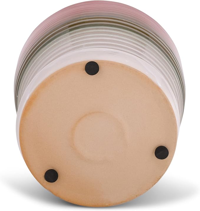 Napco Ribbed Gradient Red, Brown, and Green 4 Inch Ceramic Flower Pot Planter with Saucer