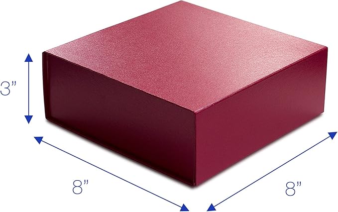 CECOBOX - Gift Boxes with Lids for Presents 8"x8"x3.1" - Matte, Collapsible Magnetic Closure Gift Box - Groomsmen & Bridesmaid Proposal Boxes, Wedding, PR, Birthdays, Holidays (Scarlet Leatherette)