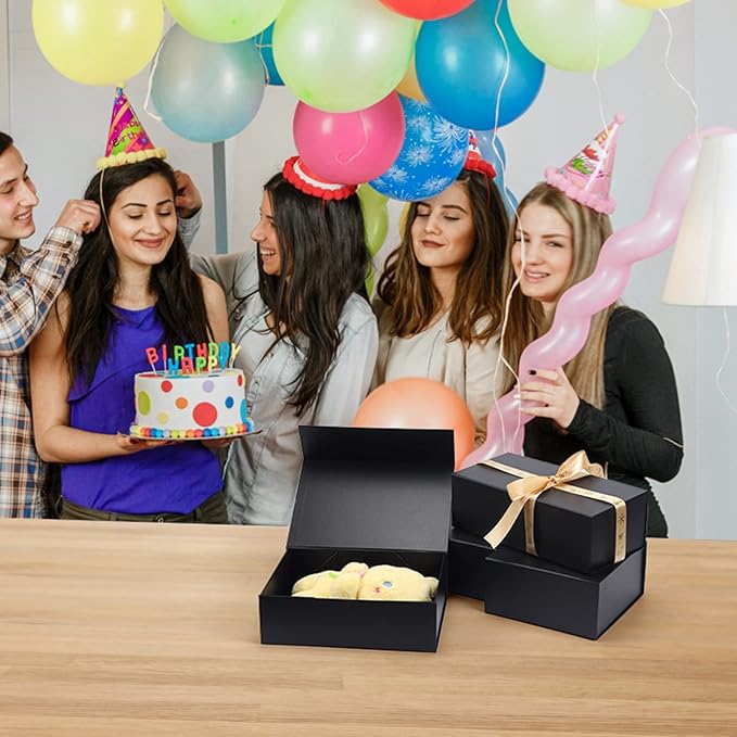 - Easy to Assemble: These black gift boxes with lids have a foldable design for easy storage, transportation, and saving space, tear off the white triangle sticker to easily assemble and glue the box.