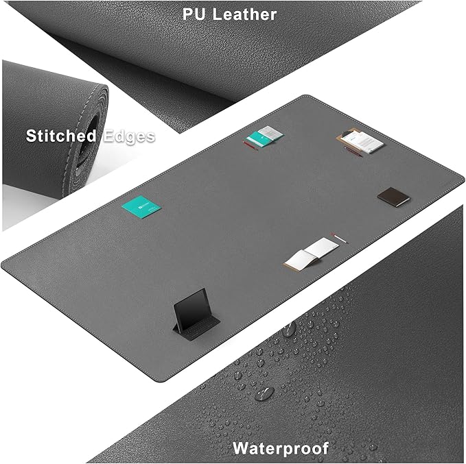 - PREMIUM QUALITY: This desk pad is made of PU leather,no unpleasant leather smells. provides a stylish, modern, and professional look to your desk,designed with anti-slip base to keep the mat from moving and sliding on your desk while in use. Perfect to place on top of wooden, glass and plastic desks.
