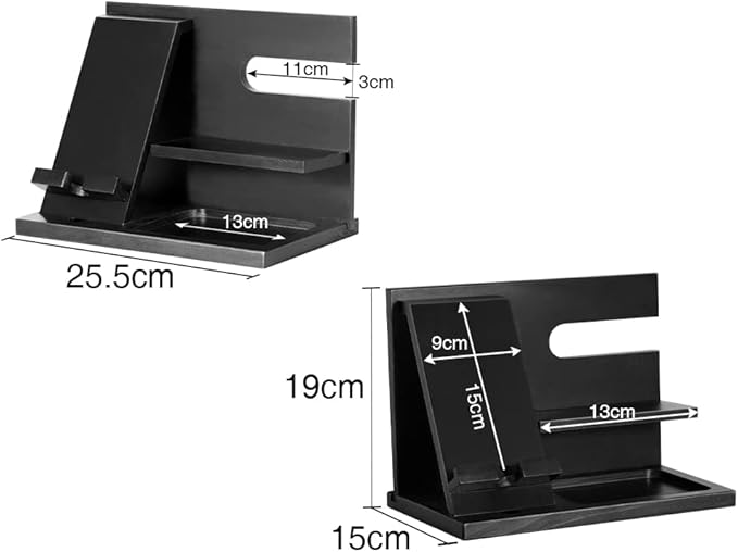 - Charging docking station wooden organizer: The docking station stand can be used for smartphone and tablet computers,always keeping them at hand. Please note: accessories shown in the photo are not included!