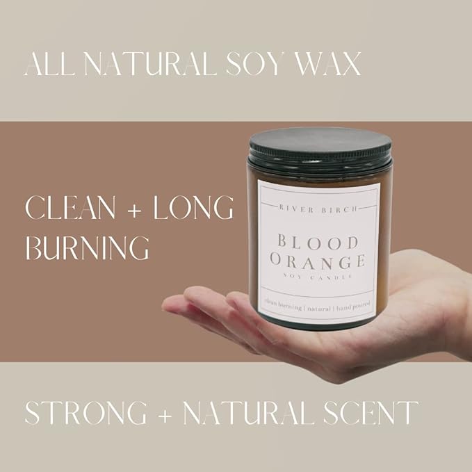 River Birch Candles Blood Orange Scented Candle | Premium, All-Natural, Non-Toxic, Soy Amber Jar Candles | 8.5oz 40 Hr Burn Time | Cozy Relaxing Gifts for Home