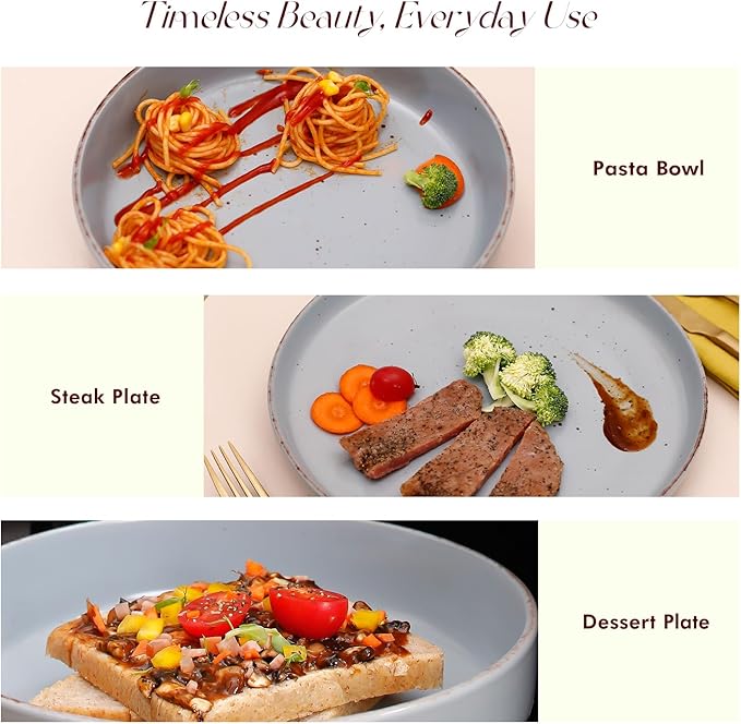 - HEALTHY & DURABLE CERAMIC:Made of high-fired premium clay, our Ceramic Dinnerware Sets are lead-free, non-toxic, and chip-resistant. Each piece offers long-lasting strength and a smooth glaze for safe, everyday meals. Perfect Plates and Bowls Sets for 4 for families.