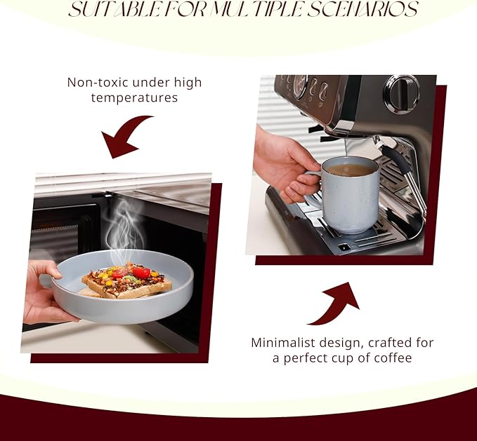 - REACTIVE GLAZE & HANDCRAFTED ARTISTRY:Each piece of our Plates and Bowls Sets features a unique reactive glaze, ensuring no two are alike. Handmade texture adds character and transforms your dining into a warm visual experience.