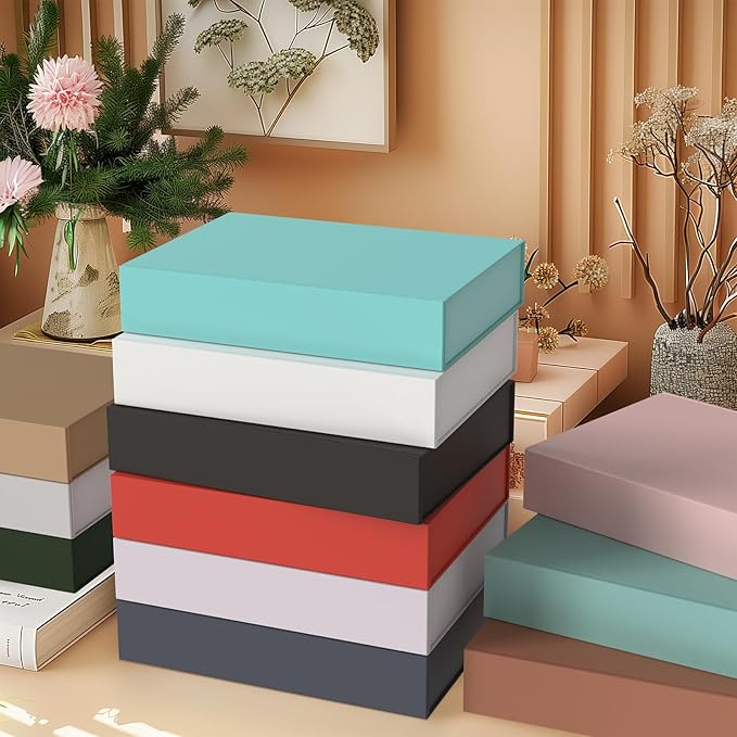 - SUITABLE SIZE: Measuring 11.5 x 8.2 x 2.3 Inches, our gift boxes with lids for presents is good for wrapping t-shirts, gloves, scarves, candies, baby clothes, jewelry, books, and more. It's the SUITABLE SIZE for bridesmaid gifts.