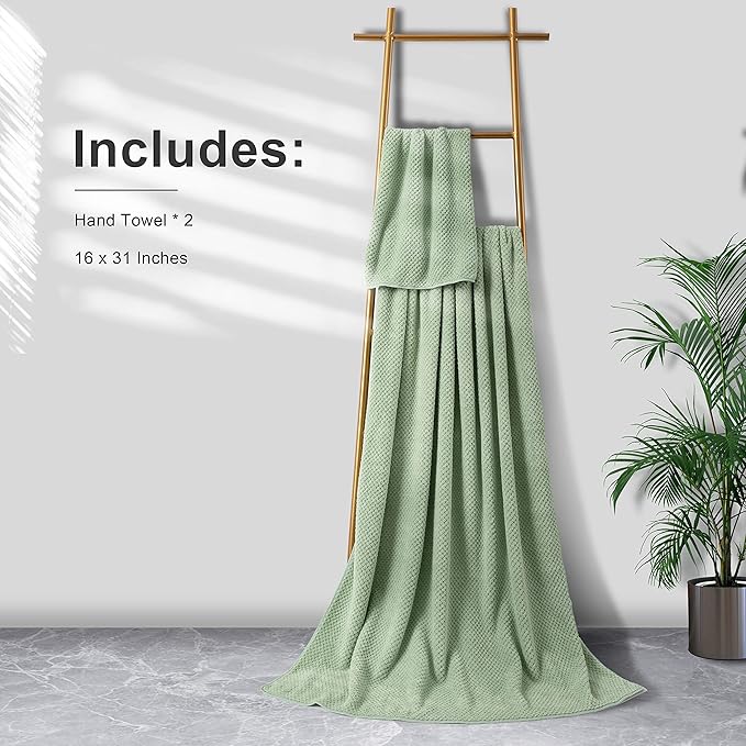 2 Piece Hand Towels Set,100% Microfiber - Quick Dry, Thick, Soft, Plush and Highly Absorbent Luxury Hotel & Spa Bath Towel for Bathroom, Pack of 2 (Green)