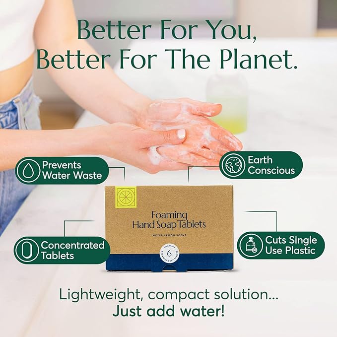 CLEANOMIC Foaming Hand Soap Tablets (6 Pack) - Foaming Hand Soap Refills, Foam Soap Refill, Hand Wash Foaming Soap Refill Tabs, Foaming Soap Tablets (Meyer Lemon)
