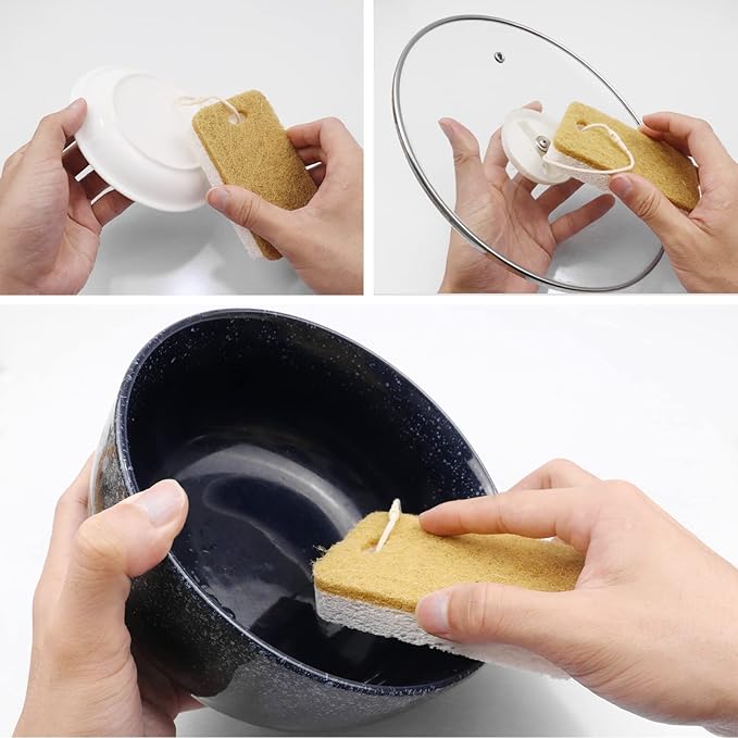 - NATURAL SPONGE - kitchen cleaning sponges is made of natural material, cellulose Sponge +coconut fiber. Natural production, plant structure, you can use it with confidence