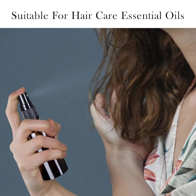 Small Amber Glass Spray Bottles For Essential Oils, 2oz Empty Fine Mist Mini Spray Bottles, Set of 18