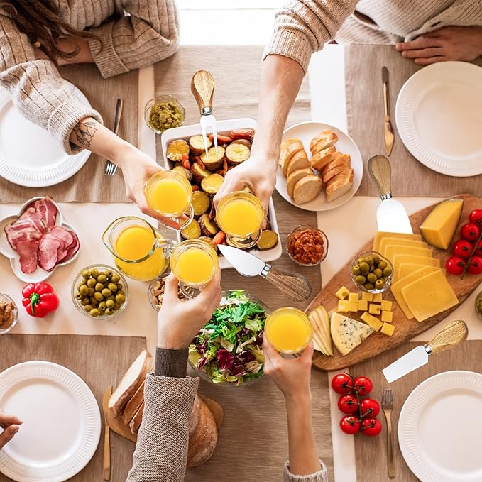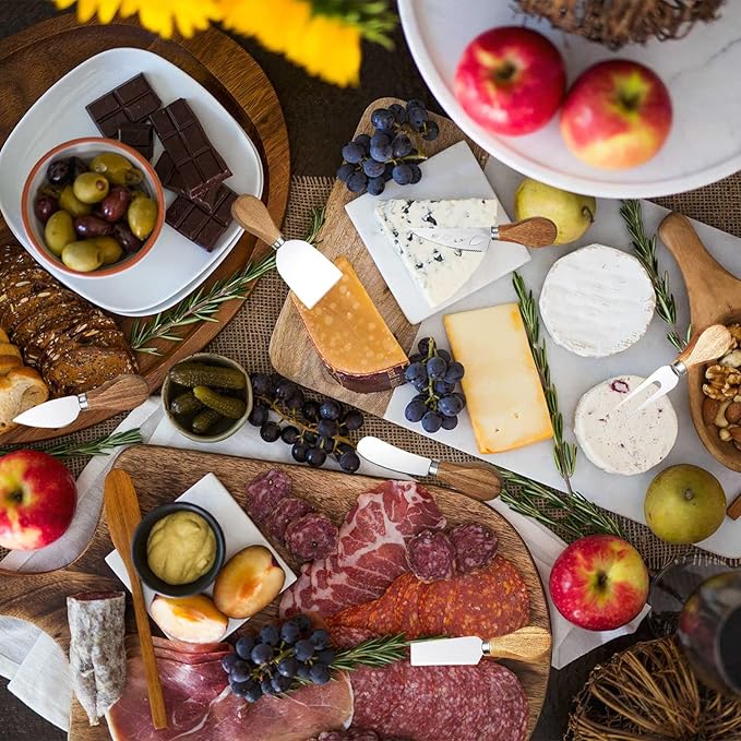 4Pcs Cheese Knife Set - Stainless Steel Cheese Knives with Acacia Wood Handle - Charcuterie Knife Set for Party and Holiday