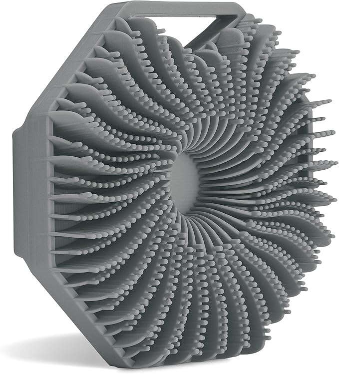 - GENTLE ON SKIN, TOUGH ON GRIME - Flexible fins on this silicone scrubber lightly buff away oil and dead skin, so your skin feels smooth, clean, and comfortable after every shower.