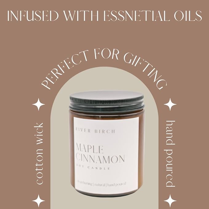 River Birch Candles Maple Cinnamon Scented Candle | Premium, All-Natural, Non-Toxic, Soy Candles | 8.5oz 40 Hr Burn Time | Cozy Relaxing Gifts for Home