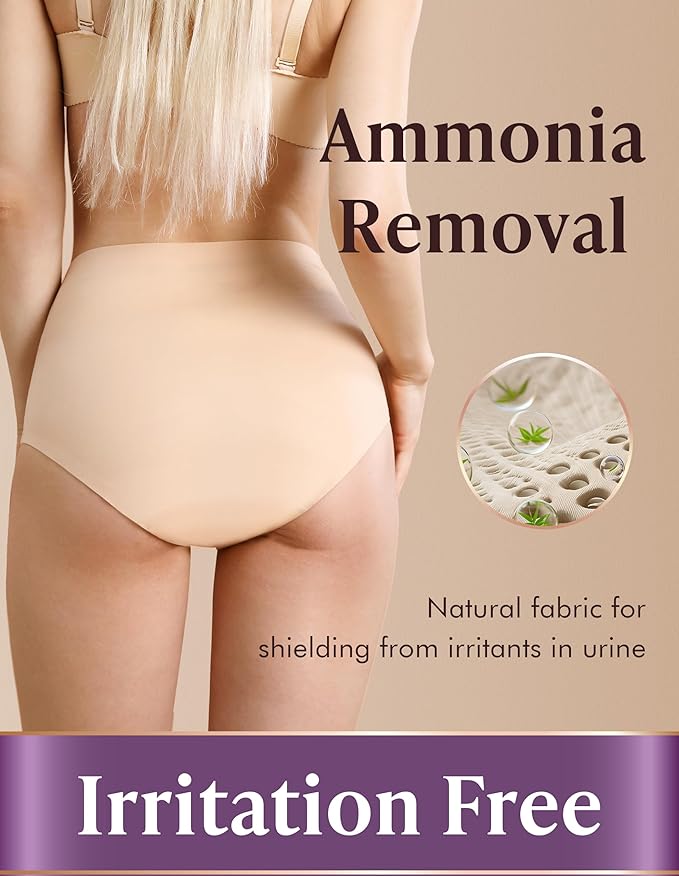 • PERFORMANCE, REGULAR UNDERWEAR LOOK: High Waist with AIRCUTE 3.0 Technology for double dryness and faster absorption. It looks and feels like your regular panties for light or moderate leakage(50ml, 1.76 oz), make you regain confidence, comfort and dignity. For heavy incontinence, night time or long time use, please try our other super absorbent leak proof panties with absorption of 120ML(4.2 oz)/150ML(5.29 oz)