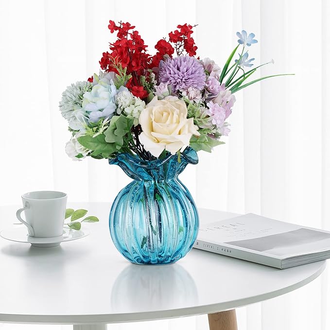 - PERFECT GIFT: Sea blue glass decorative vase is suitable for birthday, mother's day, thanksgiving, new year for female family, friends, elders. For Valentine's Day, Christmas or an anniversary gift, let them create their own collection of beautiful flowers.