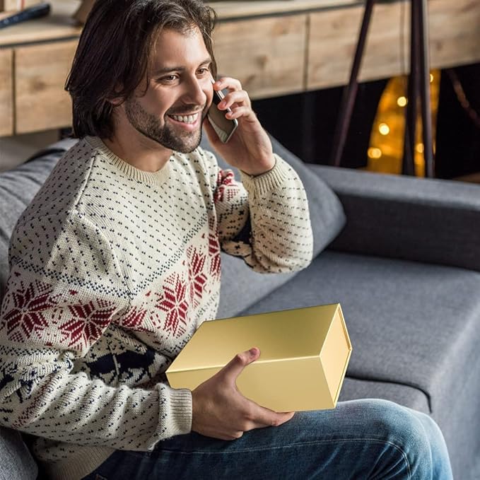 - 💝EASY TO ASSEMBLE: Rectangular collapsible gift box with magnetic lid for easy opening and closing. Quick assembly, no extra tape required, easy to fold together in 2 steps, just peel off the triangle sticker, then assemble and glue the box. Save your valuable time and effort.