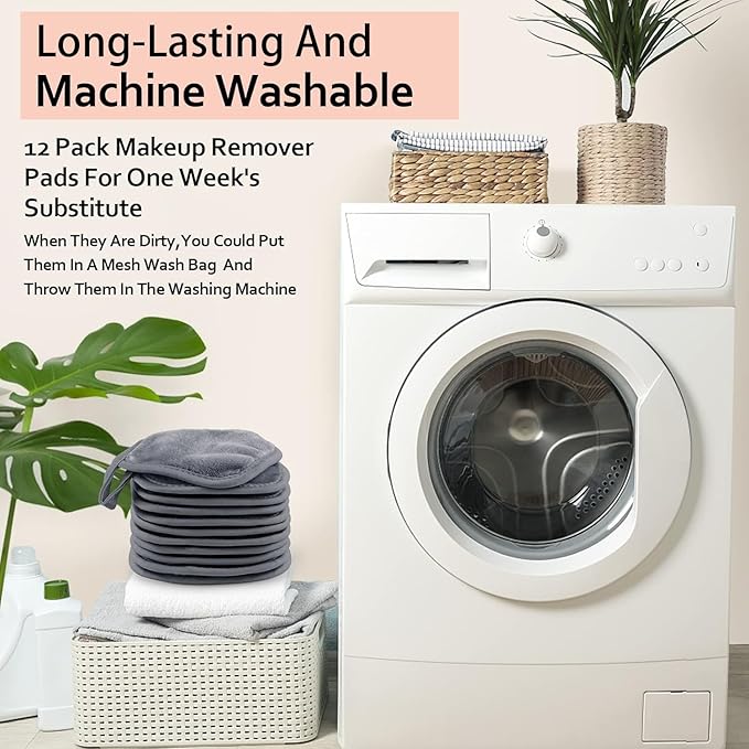 - Reusable and Washable: With 12 makeup cloths in a pack, you have enough for your daily needs. Once they become dirty, simply place them in a mesh wash bag and toss them in the washing machine. Each makeup remover pad is equivalent to 2000 makeup wipes, saving you money and reducing unnecessary waste from daily disposable makeup remover wipes