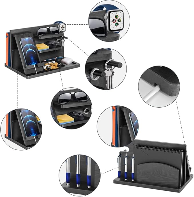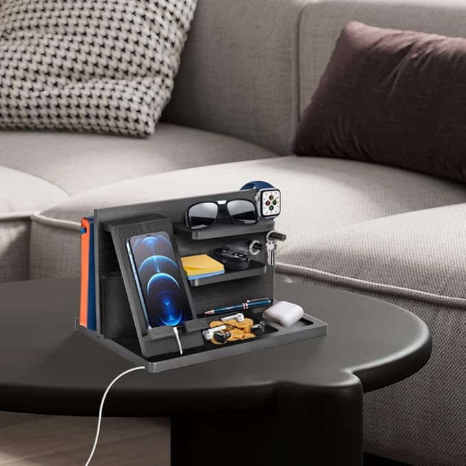 - Mens birthday gifts ideas office wooden organiser bedside mens organiser:Never forget to pack important items with the wooden docking station on the way out of your home or office.Docking stations are a space-saving way to keep your phone and other essentials organized