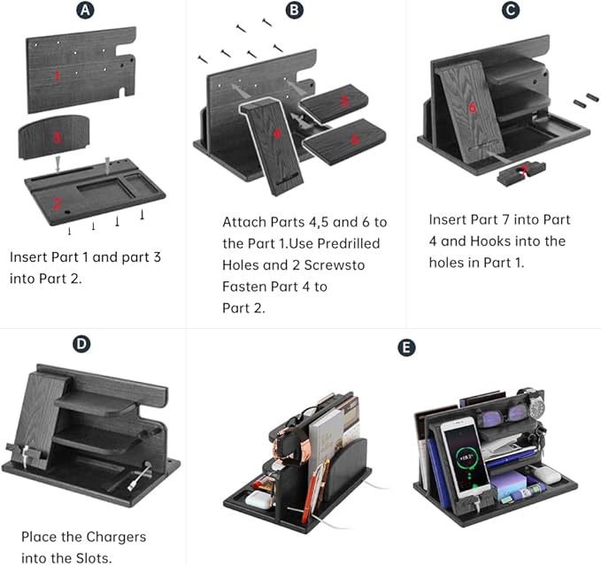 - Gifts for men who have everything:The bedside organiser stand is requires simple assembly,including screwdriver.You can store your phone,glasses,watch,wallet,keys,rings,coins and gadgets,pens,books,laptops or tablets etc.Please note! Accessories shown in the pictures are not included!