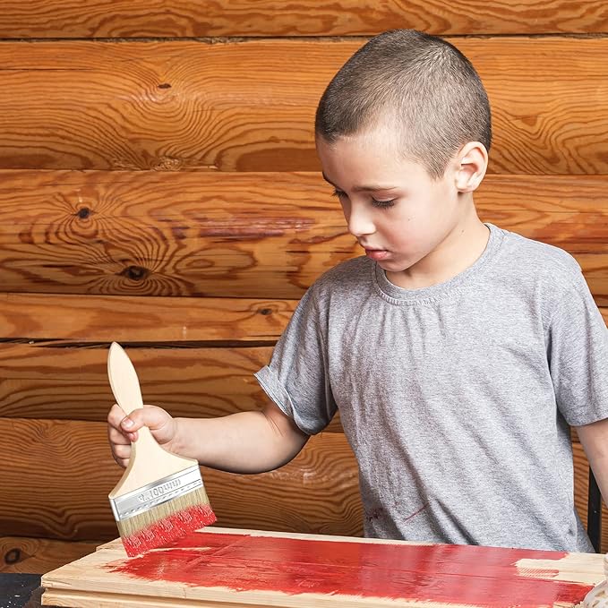 Remerry 96 Pcs 4 Inch Paint Brushes Bulk, Natural Bristle Chip Brushes with Wooden Handle, Flat Art Applicators for Wall, Furniture, Kids, Fences Details