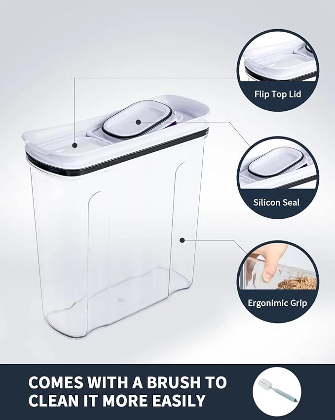 - CONVENIENT DESIGN - Anti-drop, bilateral handshake We seal these cereal storage containers with silicon so they’re airtight and odorless! You'll love our comfortable ergonomic grips; Not dishwasher safe, but the package comes with a brush to make cleaning it easier