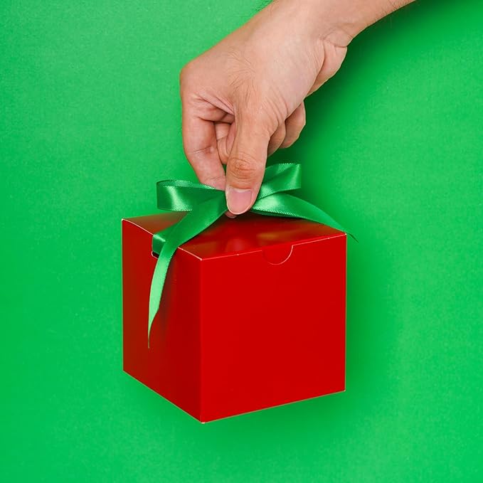 - Small Gift Boxes Value Pack, 50 red gift boxes with 50 pre-cut green ribbons, each gift box measures 4x4x4, perfect Christmas gift boxes for decent small Christmas gifts, return gifts, ornaments, candles, mugs, etc