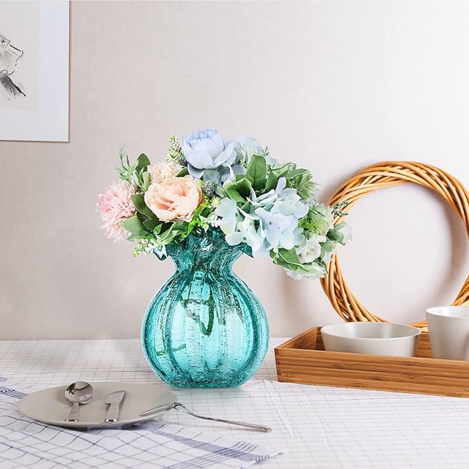 - PERFECT GIFT: Sea blue glass decorative vase is suitable for birthday, mother's day, thanksgiving, new year for female family, friends, elders. For Valentine's Day, Christmas or an anniversary gift, let them create their own collection of beautiful flowers.