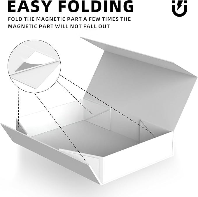 - REUSABLE & CUSTOMIZABLE: Equipped with strong magnets for effortless assembly and disassembly, our reusable gift box is easy to clean – simply wipe gently to restore its shine. Personalize it with washi tape, rhinestones, or wrapping paper to create a unique presentation. (Note: Please fold the magnetic part several times before using, It will be stronger and will not fall off.)