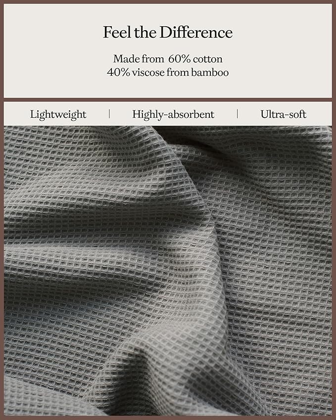 - ULTRA-SOFT YET ABSORBENT: Made from a premium blend of 60% cotton and 40% viscose from bamboo, this waffle weave towel set offers exceptional softness, lasting strength, and quick-drying performance for a touch of everyday luxury.
