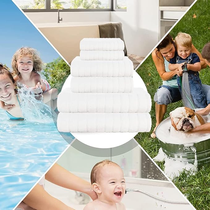 - INGREDIENTS: The set includes 2 pieces of washcloths measuring 13 x 13 inches, 2 pieces of towels measuring 16 x 28 inches and 2 pieces of bath towels measuring 27 x 54 inches.