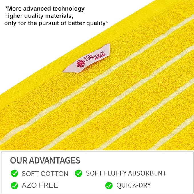CASA COPENHAGEN Ecstatic 6 Pieces Towel Set- Butter Yellow, 600 GSM 2 Bath Towel 2 Hand Towel 2 Washcloth, Designed in Denmark Made of Soft Egyptian Cotton for Bathroom, Kitchen & Shower.