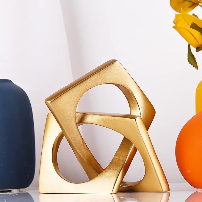 XMGZQ Gold Knot Statue for Coffee Table Centerpiece Decor,Modern Abstract Art Geometric Sculpture and Figurines, Home Decor Accent,Cube Knick Knacks for Shelves,Bookshelf,Entryway,Floating