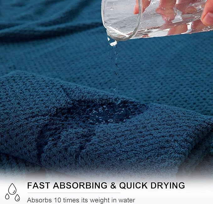 8-Piece Navy Bath Towel Set, 2 Extra Large Bath Towel Sheets, 2 Hand Towels and 4 Washcloths - Highly Absorbent Quick Dry Microfiber,Ultra Soft Towel Set for Bathroom, Waffle Weave Design, Pack of 8
