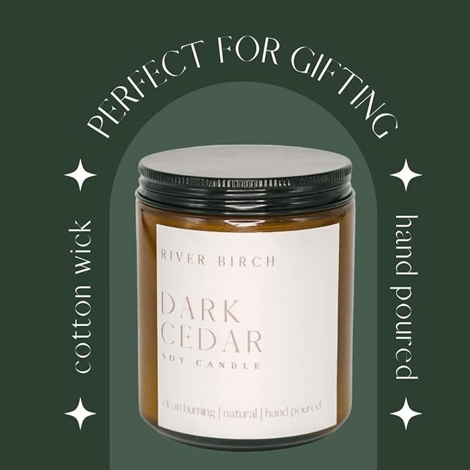 River Birch Candles Cedar Eucalyptus Scented Candle | Premium, All-Natural, Non-Toxic, Soy Amber Jar Candles | 8.5oz 40 Hr Burn Time | Cozy Relaxing Gifts for Home