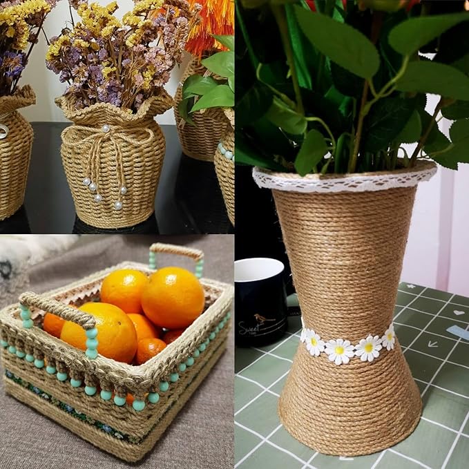 - MULTI PURPOSE - The thick twine is great for home decor, DIY arts crafts, packing, gardening applications, decorative tables and chairs, pendant flower pots, bundling, etc.