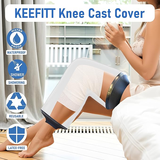 KEEFITT Knee Cast Cover for Shower, Waterproof Shower Protector for ACL Surgery, Wound, Burns Watertight Protection