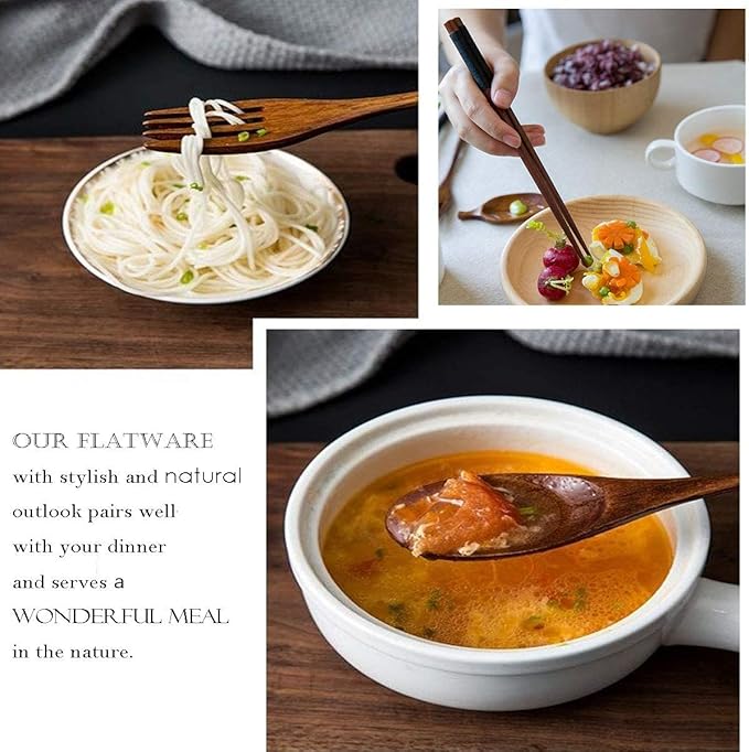 - ✿High Quality Wooden Utensils For Eating: Our quality reusable wooden cutlery with case set is corrosion resistant, durable, smooth edge with no rough spots, light weight, easy to use and portable to carry. Perfect for every breakfast, lunch, teatime and lunch.