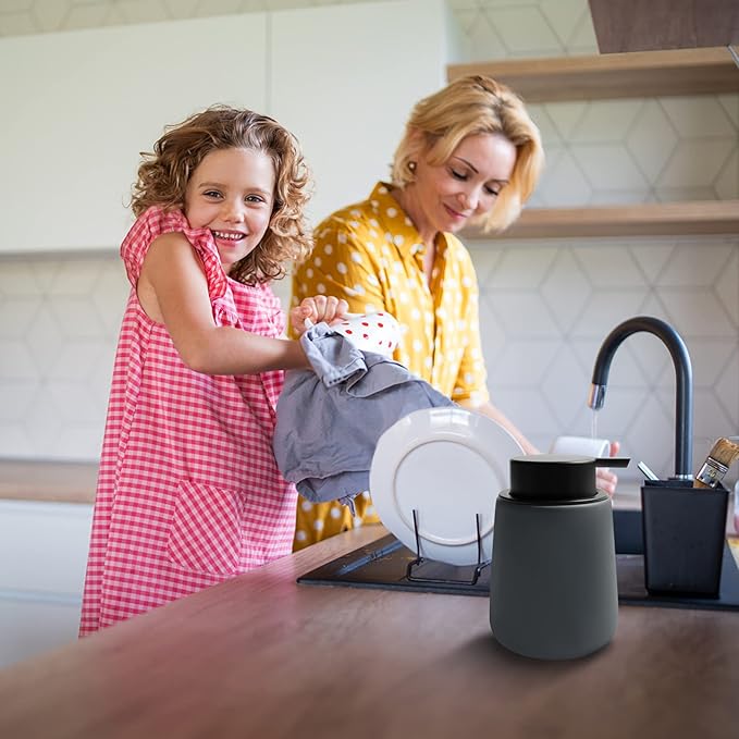 - Easy-to-Press - The Ceramic Hand Soap Dispenser uses a large area press pump made of premium plastic, we can easily squeeze out the liquid, the nozzle down is not easy to leave excess soap.