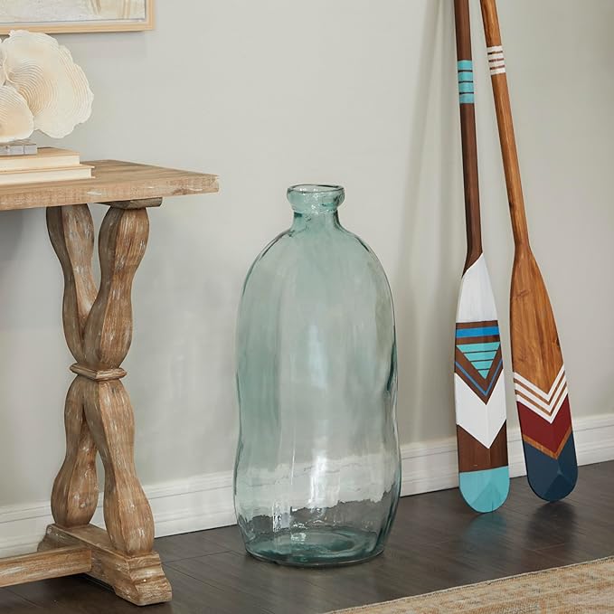 Deco 79 Recycled Glass Handmade Decorative Vase Spanish Bottleneck Centerpiece Vase, Flower Vase for Home Decoration 13" x 13" x 29", Blue