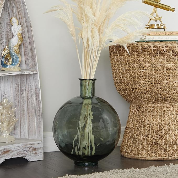 Deco 79 Recycled Glass Handmade Decorative Vase Spanish Centerpiece Vase, Flower Vase for Home Decoration 13" x 13" x 17", Green
