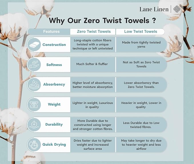 - Luxury Bath Towels : Bring the Hotel Spa vibe home with our 550 GSM 100% Premium Cotton 3-Piece Solid Highly Absorbent Towel Set. Boasting a Zero Twist construction, these towels not only feel soft against your skin, but they're also highly absorbent for convenient and comfortable drying.